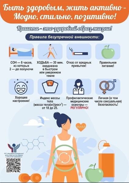 - здоровые цифры физической активности: 10000 шагов в день; не менее 30 минут умеренной и 20 минут интенсивной физической активности;