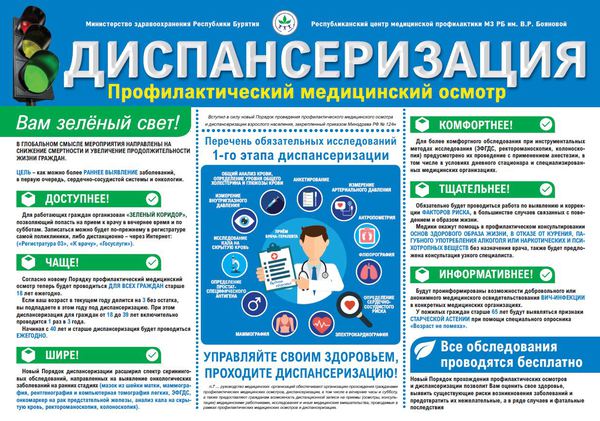 Профилактический медицинский осмотр: что это такое и как пройти. Если возраста пациента нет в списке для прохождения диспансеризации и он не относится к льготным категориям, то он вправе обратиться в поликлинику и пройти профосмотр. Осмотр может проводиться для раннего выявления заболеваний и рисков их развития. Но, в отличие от диспансеризации, в профилактический медосмотр входит меньшее число обследований. Преимущество медосмотра заключается в том, что его допускается проходить в любом возрасте по желанию пациента. Он проводится бесплатно и ежегодно. Исследования входят в первый этап диспансеризации. Прежде всего необходимо записаться на прием к участковому или в отделение медицинской профилактики. В рамках первичного визита предстоит сдать несколько анализов и спланировать их на утро. В профилактический осмотр входят: 1. Заполнение анкеты для выявления жалоб, связанных с неинфекционными заболеваниями, личным анамнезом и условиями жизни (курение, употребление алкоголя и физической активности и пр.). 2. Измерение роста, массы тела, ИМТ и окружности талии. 3. Определение холестерина, глюкозы в крови, факторов относительного (для лиц до 39 лет) и абсолютного сердечно-сосудистого риска (от 40 до 64 лет). 4. Флюорография легких раз в два года. 5. ЭКГ в покое. 6. Измерение внутриглазного давления. 7. Осмотр акушером-гинекологом для женщин до 39 лет. Далее на приеме врача-терапевта лицу оглашают результаты обследования и проводят осмотр на выявление возможных онкологических заболеваний с предоставлением рекомендаций. При выявлении признаков и высокого риска заболеваемости терапевт направит вас на дополнительное обследование. Выходные на работе при прохождении диспансеризации Работающие граждане в тот же день получают справку о прохождении медосмотра. На время диспансеризации работники вправе получить освобождение от работы на один рабочий день. Право на него предоставляется работникам один раз в три года на основании ст. 185.1 Трудового кодекса. При этом работники сохраняют рабочее место и свой средний заработок. Также диспансеризацию можно пройти без отрыва от работы вечером и по субботам. Работники предпенсионного возраста (за пять лет до наступления пенсионного возраста) и пенсионеры, которые получают пенсию по старости или по выслуге лет, вправе рассчитывать на освобождение от работы на два рабочих дня раз в год. Для этого им следует согласовать с руководством дни прохождения диспансеризации и оформить заявление в целях освобождения от работы. Таким образом, диспансеризация населения направлена на профилактику заболеваемости. Для ее прохождения не нужно иметь какие-то жалобы и повода для обращения к врачу. В 2021 году пройти диспансеризацию могут граждане 1982, 1985, 1988, 1991, 1994, 1997, 2000, 2003 годов рождения и лица в возрасте от 40 лет.